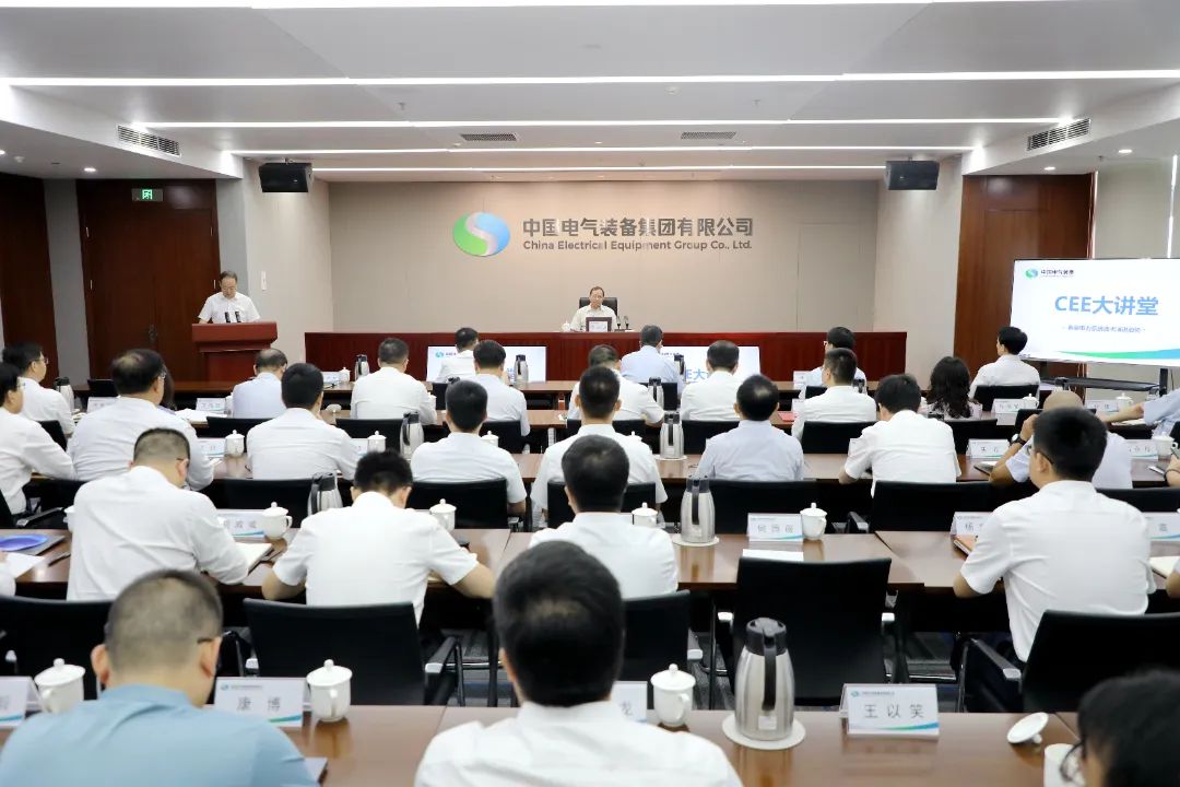 为推动学习贯彻习近平新时代中国特色社会主义思想主题教育走深走实,落实党中央、国务院关于构建新型电力系统的决策部署,7月26日,中国电气装备第二期“CEE大讲堂”在集团公司总部举行。本期大讲堂,特别邀请中国工程院院士、国家电网一级顾问、中国电科院名誉院长、中国电机工程学会副理事长郭剑波以《新型电力系统演进趋势》为题开展专题讲座。集团公司党委书记、董事长白忠泉出席讲座,党委常委、副总经理朱安珂主持讲座,其他领导班子成员参加活动。