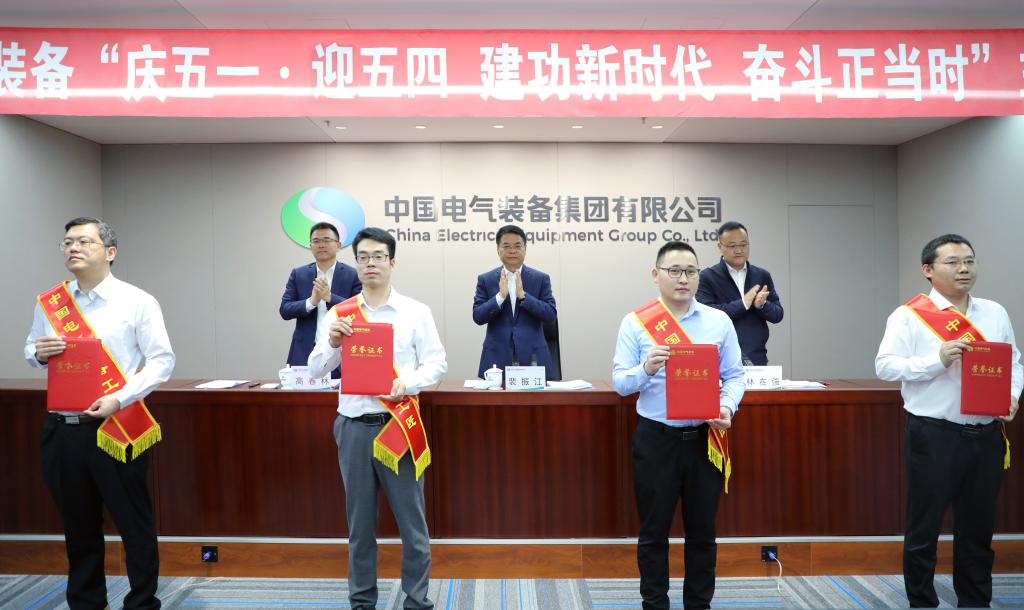 现场还举行了青年突击队授旗仪式,为集团公司首批劳模创新工作室授牌,表彰了中国电气装备工匠、“两红两优”、优秀青年突击队,向广大职工和青年发出《敢为敢创当先锋 凝心聚力建一流》的倡议书,号召广大职工和青年在集团公司党委的坚强领导下,踔厉奋发、勇毅前行,继续保持敢为敢创、争先创优的良好态势,为建设世界一流智慧电气装备集团贡献智慧和力量。