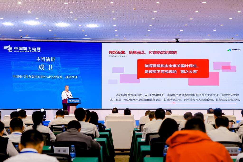 10月29日,南方电网第三届供应链合作伙伴大会在广州召开,本次大会以“向安而生 向新而立 向绿而行 向韧而为”为主题。中国电气装备党委常委、副总经理成卫应邀参会并作题为《做大做强做优能源产业链,服务新型电力系统建设》的主旨演讲。