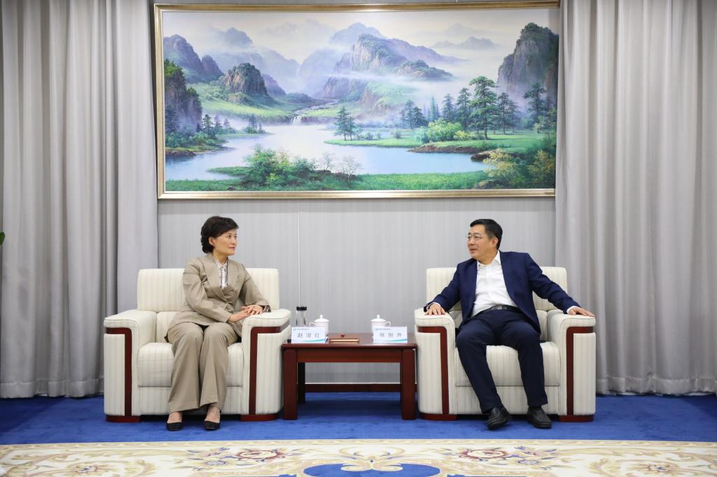 张旭升对赵淑红一行到访表示欢迎,介绍了中国电气装备成立以来的发展情况,并感谢许昌市政府长期以来对中国电气装备所属企业在当地的发展所给予的支持与帮助,同时希望与许昌市政府继续深化央地合作关系,加快推进新能源、人工智能等战略性新兴产业布局与科研联合体建设,助力许昌市新质生产力培育和经济发展。
