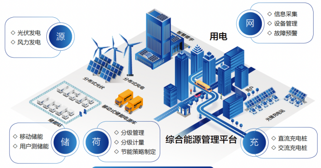综合能源系统采用应用层、网络层、设备层三层架构,将新一代信息技术与能源全链条深度融合,面向新能源发电、智慧能网、负荷管控、综合管理、新型储能及电力物联网等业务领域,提供完整解决方案,实现源、网、荷、储全要素能源流与信息流“全环节、全贯通、全覆盖、全生态、全场景”信息互联及服务管理,降低企业碳排放,打造低碳、零碳示范项目。