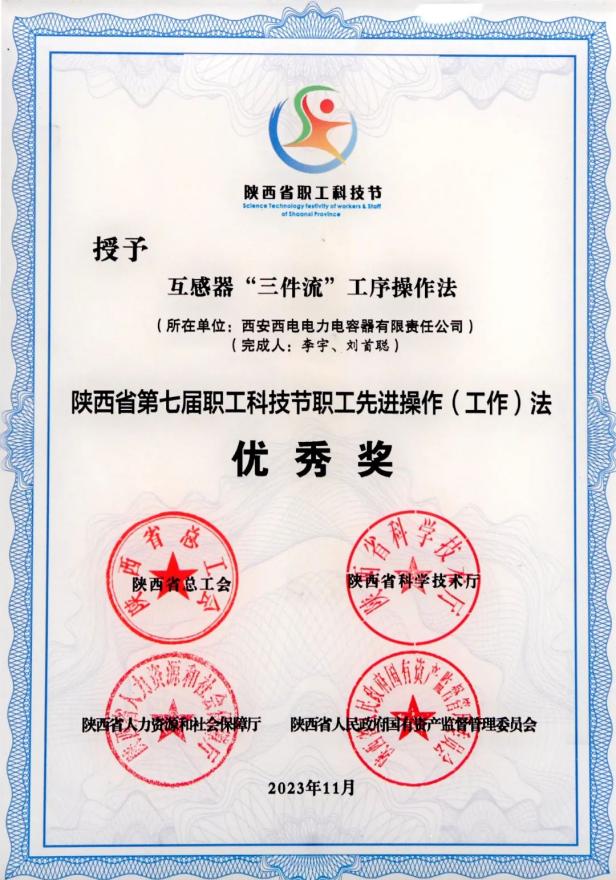 陕西省职工先进操作(工作)法优秀奖——中国西电所属西电西容“互感器'三件流'工序操作法”