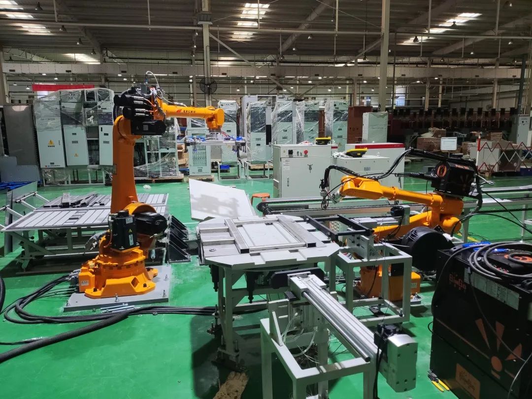 充气柜焊接项目是在充气柜气箱单件筋板焊接时采用搬运机器人和焊接机器人相互配合作业,将人工手工作业模式转向自动化方向。项目实施后,单面箱体筋板从手工焊接2.5小时缩短至自动化焊接1.5小时,同时有效提升焊缝的一致性,整体提升了焊接的外观与质量。