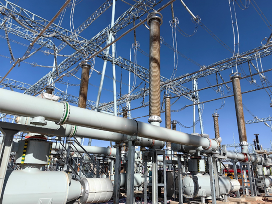 由中国西电所属西开电气为乌海敖瑞500千伏输变电项目安装的7个间隔550kVGIS和7个间隔220kV HGIS一次性通过工频耐压试验。乌海敖瑞500千伏输变电工程位于内蒙古自治区巴彦淖尔市乌拉特后旗获各琦苏木境内,是内蒙古自治区首批沙、戈、荒新能源大基地重点建设项目。为确保优质高效完成该项目安装任务,项目团队积极沟通施工方,制定详细切实可行的安装计划,动态实施全过程质量监督和预控管理,积极克服蒙西地区低温寒冷风沙大的极端天气,主动发扬“特别能吃苦、特别能战斗、特别能奉献”的优良传统,全力抢抓施工进度,助力敖瑞500千伏输变电工程顺利投产。