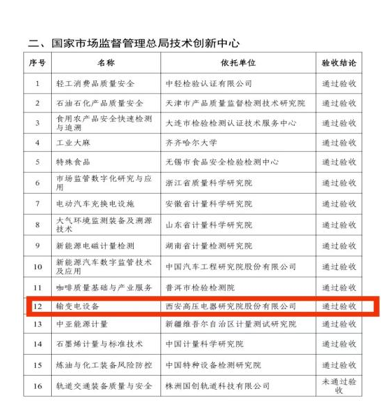近日,国家市场监督管理总局下发《市场监管总局办公厅关于公布2021年批准建设的国家市场监督管理总局重点实验室和技术创新集中验收结果的通知》,西高院筹建的“国家市场监督管理总局技术创新中心(输变电设备)”(以下简称技术创新中心)顺利通过总局验收并进入正式运行序列。