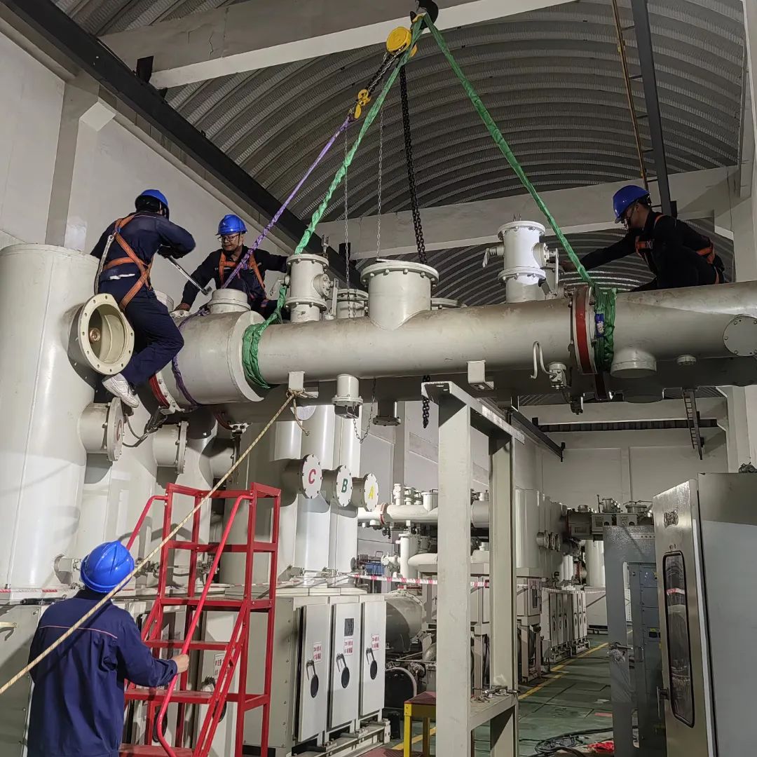 千淘万漉虽辛苦,吹尽狂沙始到金。经过二十多天的连续奋战,项目团队克服了老旧设备复杂、检修难度大等重重困难,圆满完成了大修任务,检漏及耐压试验一次性通过,设备顺利带电运行,为西开智慧服务在跨品牌技术改造方面积累了宝贵的经验!