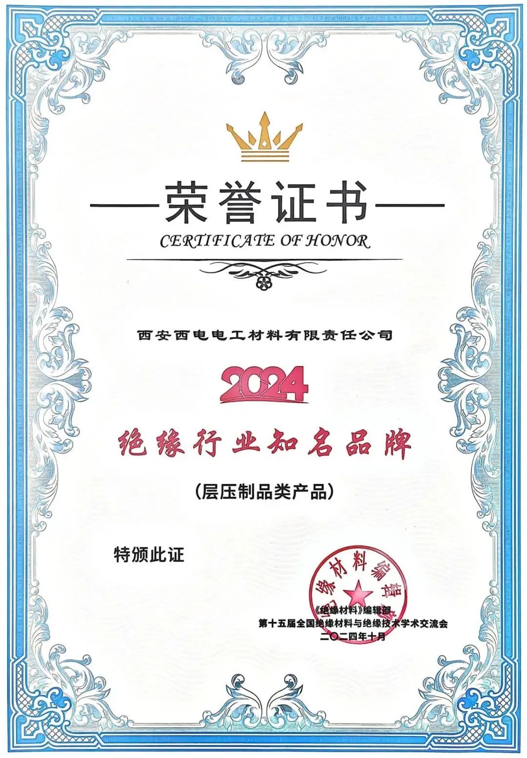 在本次盛会上,中国西电集团所属西电西材荣获“2024绝缘行业知名品牌”称号,这一殊荣不仅是对企业数十年深耕绝缘材料的认可,更奠定了西电西材在技术创新与市场引领方面的地位。作为国内唯一一家纯国有绝缘材料生产企业,以及西北地区唯一通过CNAS认证的电工绝缘产品检测中心,西电西材以“制造精品、装备电力、服务社会”为使命,紧跟国家高质量发展的步伐,先后多次承担国家行业标准委员会国标的修订与贯彻工作,参与起草绝缘材料行业标准、国家标准、国军标30余项,担负着航天、军工、输变电等重点工程配套绝缘材料的研发和生产。下一步,西电西材将立足企业发展基础和资源禀赋,精心构建“一核四极”现代产业体系,将创新作为推动企业发展的核心动力,加强与行业内的交流与合作,持续优化产品性能和质量,为绝缘行业的发展持续贡献力量。
