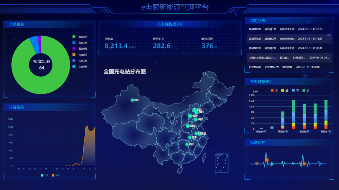 许继电气提供基于全托管的智能运维平台与半托管的运维APP两种解决方案。全托管模式下,用户无需投入充电场站的日常运维成本,许继负责充电场站的设备维护、故障分析、场站监控等相关运维服务;半托管模式即许继提供监控管理、在线专家、设备维护方案等相关服务,用户自行对场站进行运维。