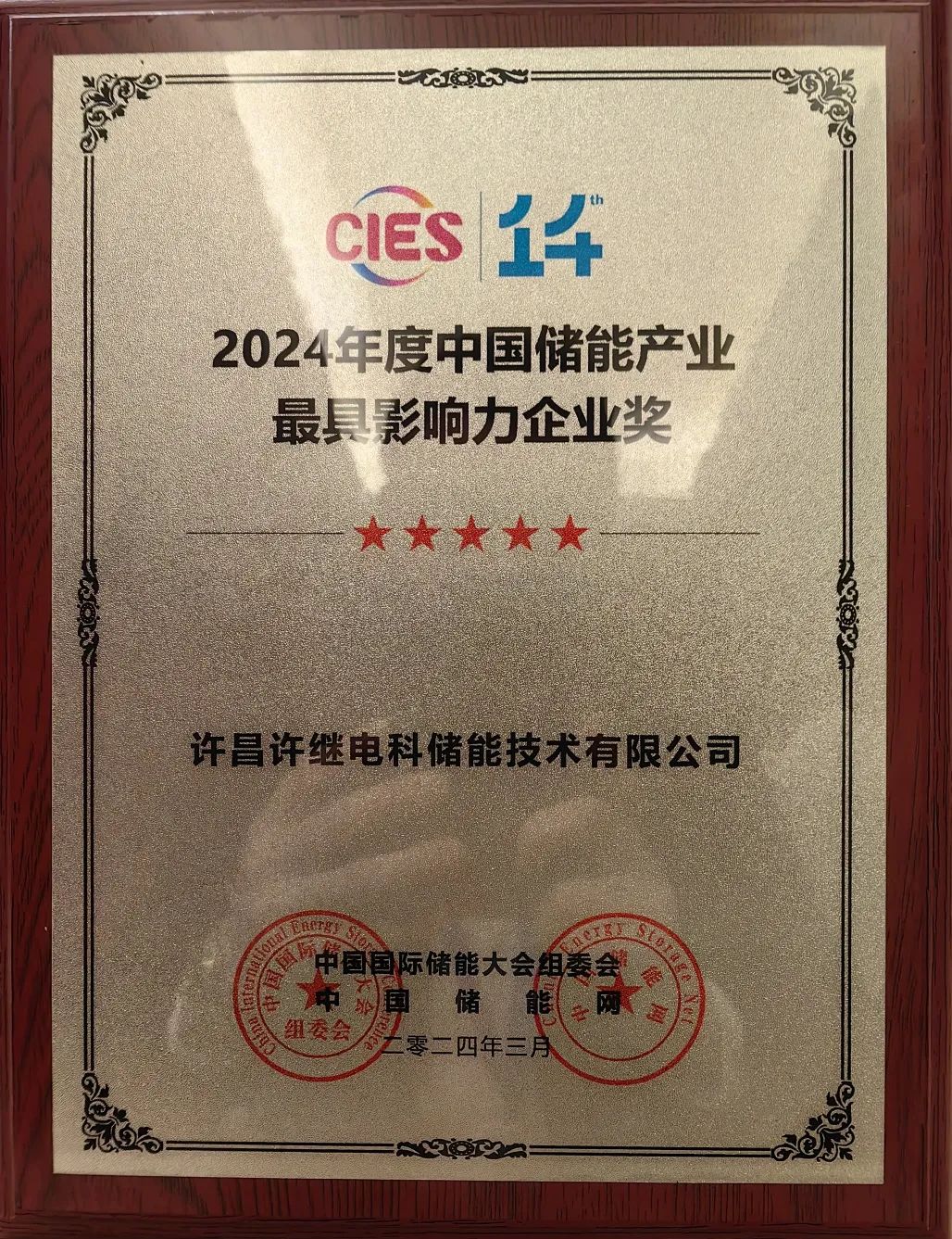 在中国储能产业最具影响力系列奖项颁奖盛典上,许继集团电科储能公司荣获“2024年度中国储能产业最具影响力企业奖”,许继电气电力电子公司荣获“2024年度中国储能产业最佳工商业储能解决方案奖”和“2024年度中国储能产业功勋人物奖”。