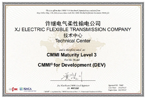 许继电气柔性输电公司成功通过CMMI-DEV V3.0成熟度3级认证,这标志着其软件研发能力已达国际先进水平,展现了许继电气的强大软件研发与管理实力,为提供更高技术与质量的产品和服务奠定了基础。