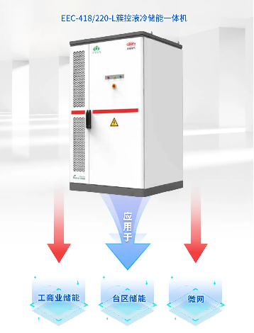 基于GBL232-215簇控式液冷储能模块,推出了EEC-418/220-L簇控液冷储能一体机。EEC-418/220-L簇控液冷储能一体机采用All-in-one设计,配备了高性能的磷酸铁锂电芯及自研3S控制器,结合液冷和多重防护系统,支持融合终端通讯、云平台显示。