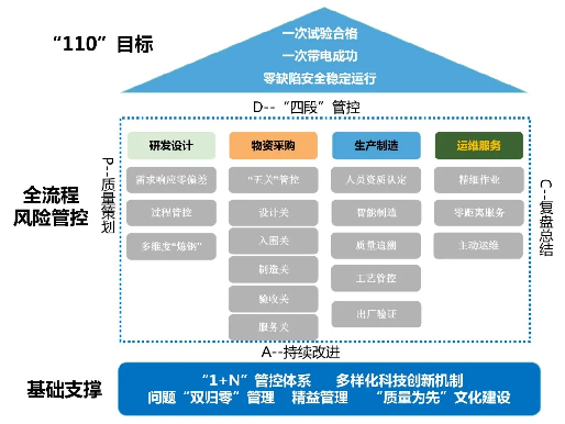 该模式秉持“常存敬畏之心、确保万无一失”工作方针,聚焦与产品质量密切相关的研发、采购、制造、服务等四段关键过程,通过实施零偏差需求响应、产品“炼钢”、“五关”管控、精益智造、精细作业、“零距离”服务等特色做法,筑牢特高压产品研发设计、出厂试验、现场运行“三道防线”,并通过设备成功投运后的全过程复盘,实现技术与管理迭代升级,推动产品质量螺旋上升。