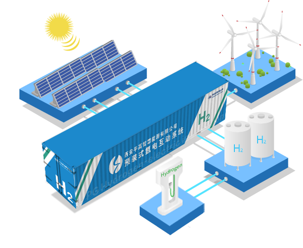 平高预装式氢电互动系统具有定制化设计、工厂化装配特点,可以快速接入现有及新建微电网,解决涉氢场景组网复杂、集成程度低、安全管控困难等问题,结合主动控制、前后端一体化协同运行的能量管控策略,提升系统运行经济性、稳定性与安全性。同时其外置式储氢结构满足储氢量柔性扩展,具备长时/大容量储能能力,从而适应目前涉氢系统建设规模快速扩大及氢能作为二次能源和终端能源低成本应用的要求。